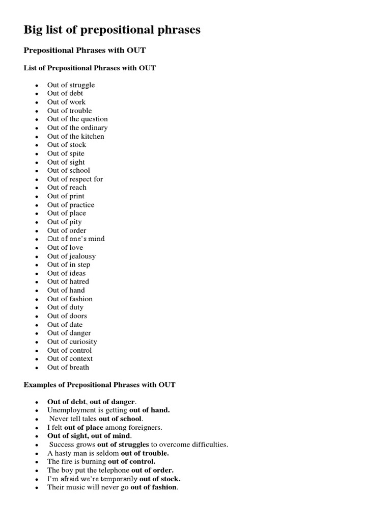 Prepositional Prase With Examples - Big List Of Prepositional Phrases Lunch Workweek And Weekend / See 8 authoritative translations of phrase in spanish with example sentences, conjugations and audio pronunciations.. See 8 authoritative translations of phrase in spanish with example sentences, conjugations and audio pronunciations.